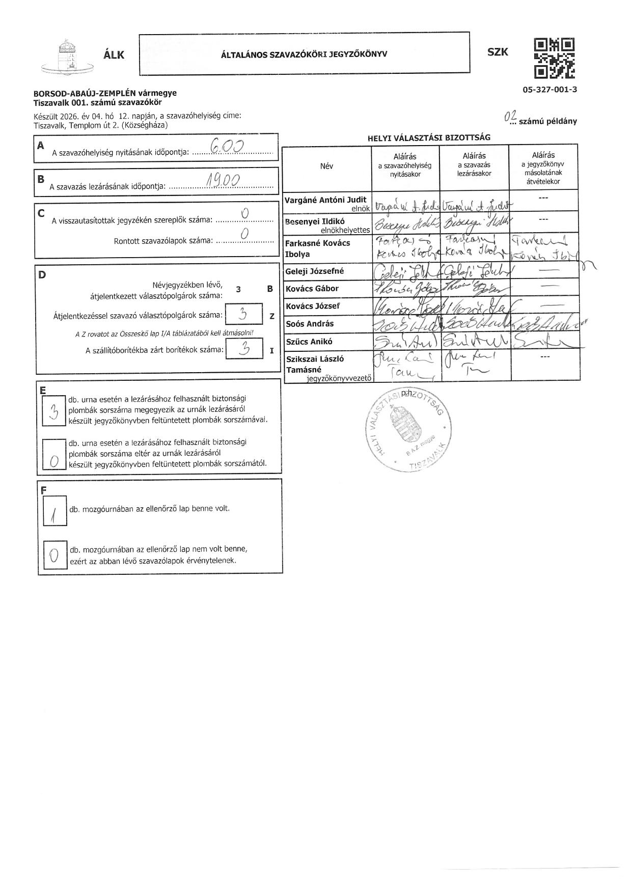 Tiszavalk választási eredmény közzététele